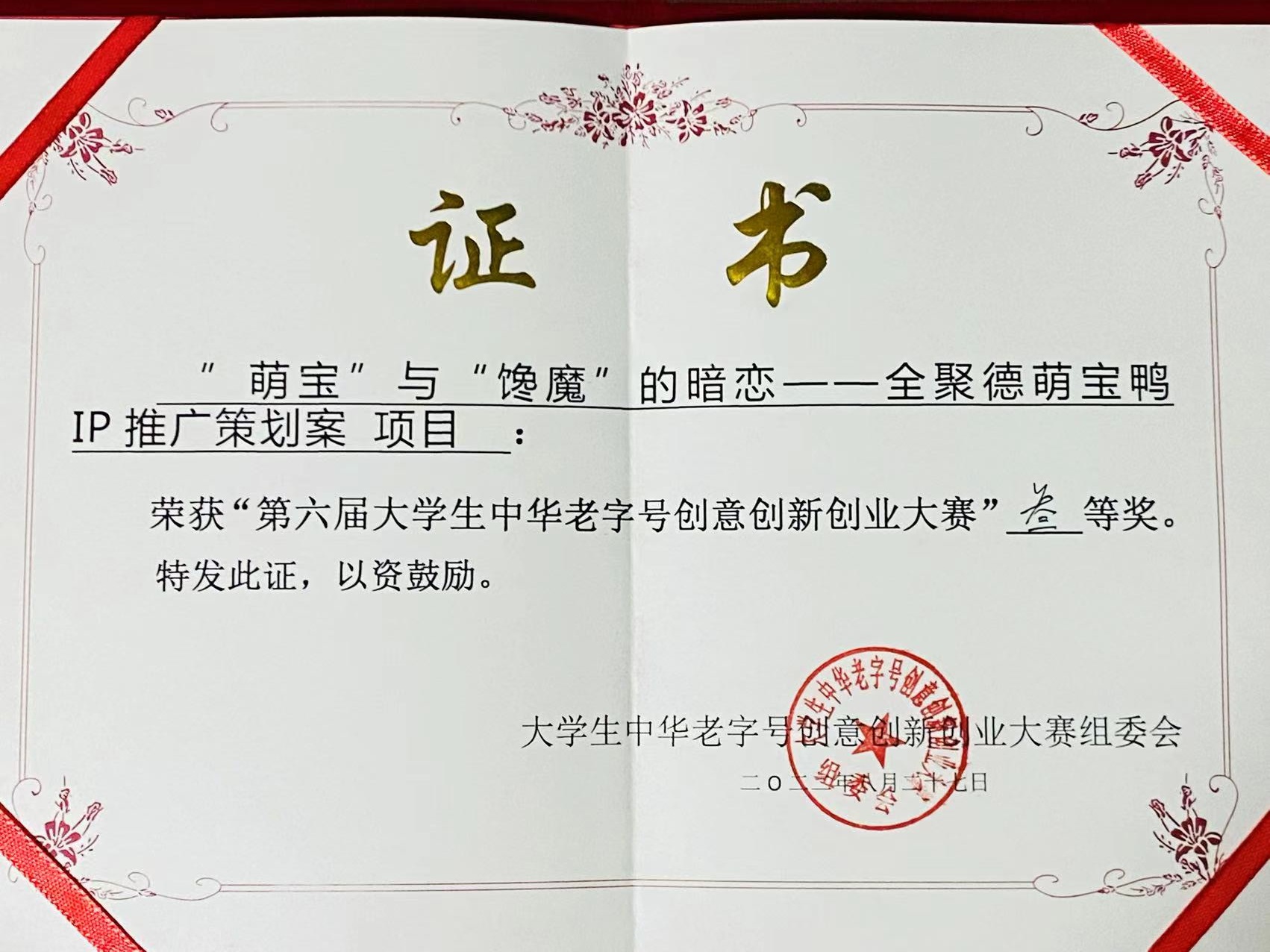 8月27日,第六届大学生中华老字号创意创新创业大赛总决赛在北京举办。该赛事于2021年12月启动,共有101所学校的213个项目参赛,最终13个项目进入大赛总决赛。我校团队的项目《“萌宝”与“馋魔”的一场暗恋》(团队成员:李明浩、徐光亮、刘淼淼、常渼;指导教师:张景云、李东)脱颖而出,进入总决赛并获得三等奖。在项目策划前,研究团队前往全聚德和平门店及前门店进行现场调研体验,并与集团公司、门店相关负责人进行深入沟通,基于全聚德品牌文化和年轻化转型战略,为全聚德“量身定制”了新颖独特的萌宝鸭IP运营方案,得到了评审专家和项目企业的好评。