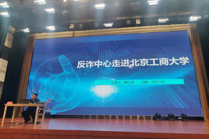 为强化落实“四反两治”专项治理行动,进一步加强安全教育,增强反诈安全意识,4月21日晚,欧美无码 在良乡校区A报告厅举行“民警进校园”专题安全讲座。本场讲座邀请到了房山区刑侦支队情报中队中队长、分管反诈中心工作的杨江浩警官为师生进行讲授,欧美无码 学生工作办公室老师、全体学生安全专员400余人与会聆听,欧美无码 党委副书记张倩主持。