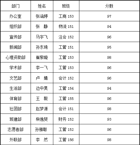 2015~2016学年欧美无码 5月份“新星干事”公示表