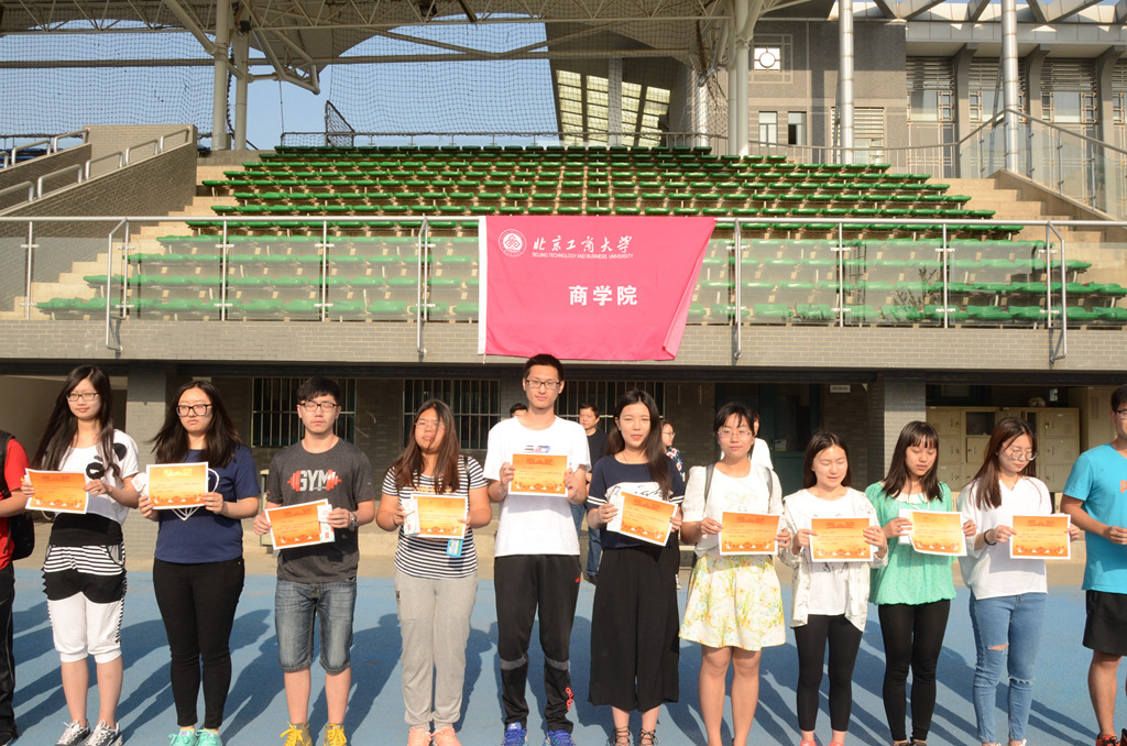 首先 ,由15级辅导员郭建荣老师宣读《关于对2016年春季学期“相约晨曦”晨练活动先进同学的表彰决定》,由13级辅导员赵杰老师和14级辅导员寇明雯老师对刘赫、王浩、魏菊等来自15个班级中共69名在晨练活动中表现突出的先进个人颁奖。