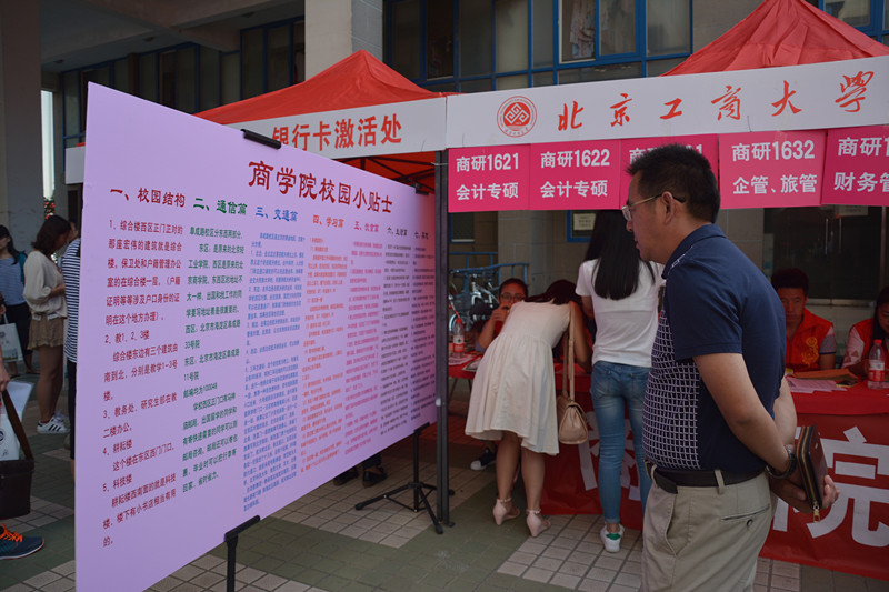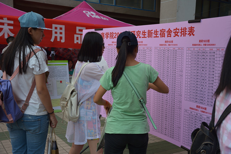 迎新工作人员早上7:00就已经全部到位,为接待新生报到做了充分的准备,服务工作中注重创新,亮点颇多。商研会同学精心制作了3块展板:新生报到流程详细介绍了报到的步骤,一目了然方便同学们顺利办理报到手续;宿舍信息表具体到班级、姓名、学号,方便同学们及时查询;校园生活小贴士介绍学校及周边的学习、交通、美食等各种信息,为同学们的学习、生活带来了及时的帮助和全方位指导。学院此次采用按班报到的模式,除了做出醒目的班级提示牌外,还提前建立好了各班微信群,并将二维码放置于报到处,实现新生即时入群,为后续班级建设顺利开展打下良好基础。学院提前将银行卡、饭卡、报到材料等资料按照班级、姓名用资料袋分装,并提前在信封上写好班级、姓名、宿舍,不仅方便同学更大大加快了办理入学手续进度,面对近200名新生的庞大队伍真正实现了无需排队、高效办理。此外,在场的研会成员以及工作人员对新生的疑问与困惑一一进行详尽地解答,并给出研究生学习、生活的相关建议,形成热烈的交流、咨询场面,使新生充分感受到欧美无码