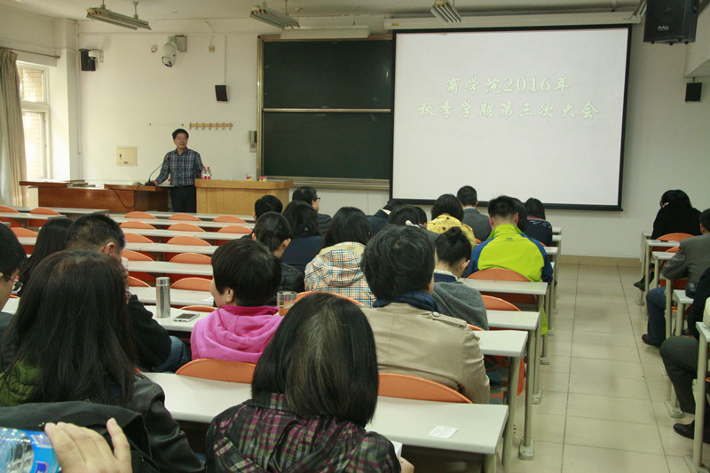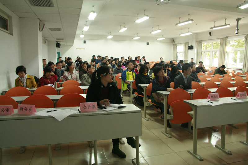 全体教师在教三楼312教室召开本学期第三次全院大会,院长王国顺主持会议。