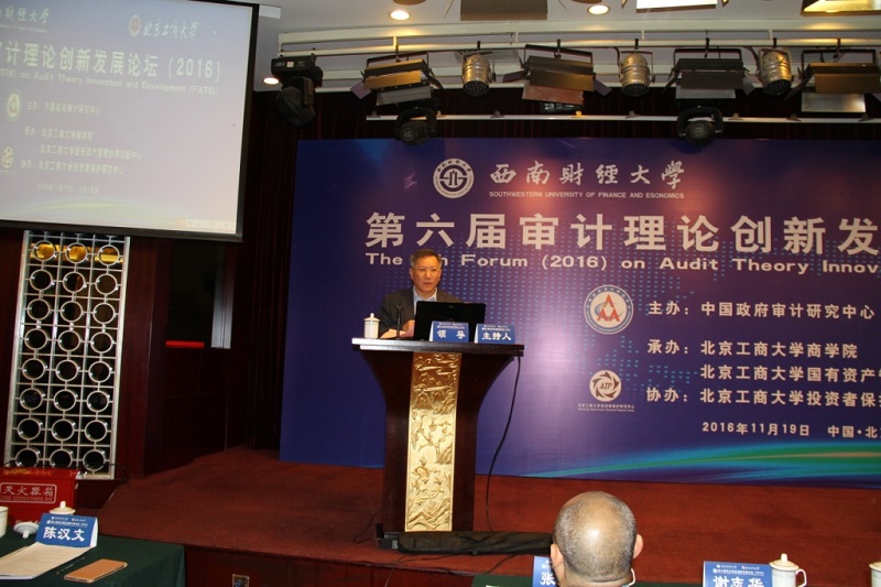 投资者保护研究中心协办的第六届审计理论创新发展论坛在北京举行,副校长谢志华、张耘出席本次论坛。审计署党组成员、副审计长孙宝厚、审计署审计科研所长姜江华、中国社会科学院财经研究院院长高培勇、中国审计学会副会长、中国政府研究中心主任蔡春、中国审计学会副秘书长刘力云等70余家单位的220余位政府、学界和实务界的审计专家参加了本次论坛。