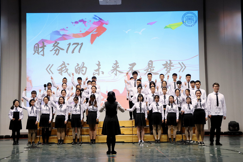 表彰大会后是纪念“一二•九”运动82周年“不忘初心跟党走,学子共创新时代”合唱比赛。本次比赛分为光辉革命路、青春正当时、时代新华章三个篇章。在比赛中,17级各个班级都全情投入到了合唱中,曲目中包含《精忠报国》、《五星红旗》、《没有共产党就没有新中国》、《爱我中华》和《歌唱祖国》饱含爱国主义情怀的经典之曲,亦包括《红蜻蜓》、《难忘茉莉花》、《我相信》、《相亲相爱》及《我的未来不是梦》洋溢着青春色彩的活力之歌,还有《明天会更好》、《最初的梦想》、《国家》、《青春舞曲》、《奔跑》令人奋发向上、憧憬未来的希望之音。工商类163班张泽琦的《丰碑的传说》、老兵志愿服务团的《强军路上有我》、舞蹈团的《青春似火》让现场再次掀起了高潮。同学们动情的演绎感染了在场所有的观众,更激励了大家学习十九大精神,肩负着使命与责任,创造中国更美好的明天。