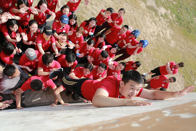 特别是“翻越4米障碍墙”中,刚开始,队员面对没有任何辅助措施的高墙不免心生退缩,但在教练的指导下,搭基座,筑人墙......最终小队里面的每名成员都顺利翻过这堵看似无法翻越的障碍墙。这也告诉大家团队——就是在你努力向上爬的时候,下面有托起你的兄弟,上面有拉你的朋友,还有旁边一群默默关心着你的人……