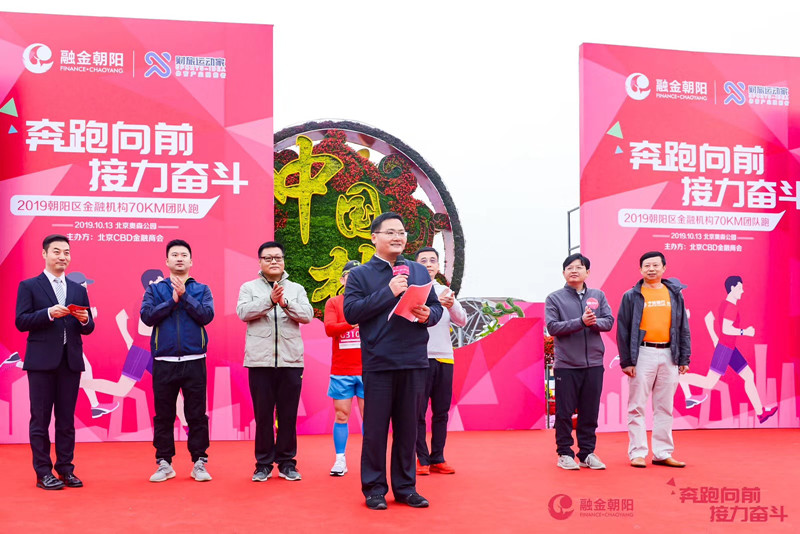 朝阳区副区长朱晟致开幕词,他向朝阳区1700多家金融机构对朝阳经济发展给予的助推表示感谢,并感谢欧美无码 志愿者们对本次活动的有力服务。欧美无码 党委副书记樊江涛和领导嘉宾共同发令起跑,60多家金融机构的400余名选手争先恐后,竞相角逐,每个队伍由7名选手组成,环跑10公里,以团队合跑70公里向70周年国庆献礼。