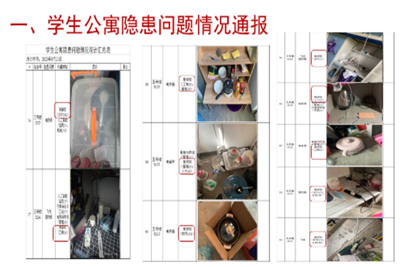 学院召开学生宿舍安全隐患通报及整改专题工作会议后,本科生及研究生各年级辅导员根据学校通报情况调查清楚存在问题具体人员,切实核实并落实归属,由辅导员对相关学生进行批评教育,讲清宿舍安全管理规定,对使用违规电器可能引起的危害进行说明,引导其深刻反思并做出检讨,于9月25日中午统一收取其违规电器存于学院,于9月27日收齐相关学生的书面检查,并以存在问题的宿舍为单位逐一填写《防火监督检查发现安全隐患问题情况调查表》。