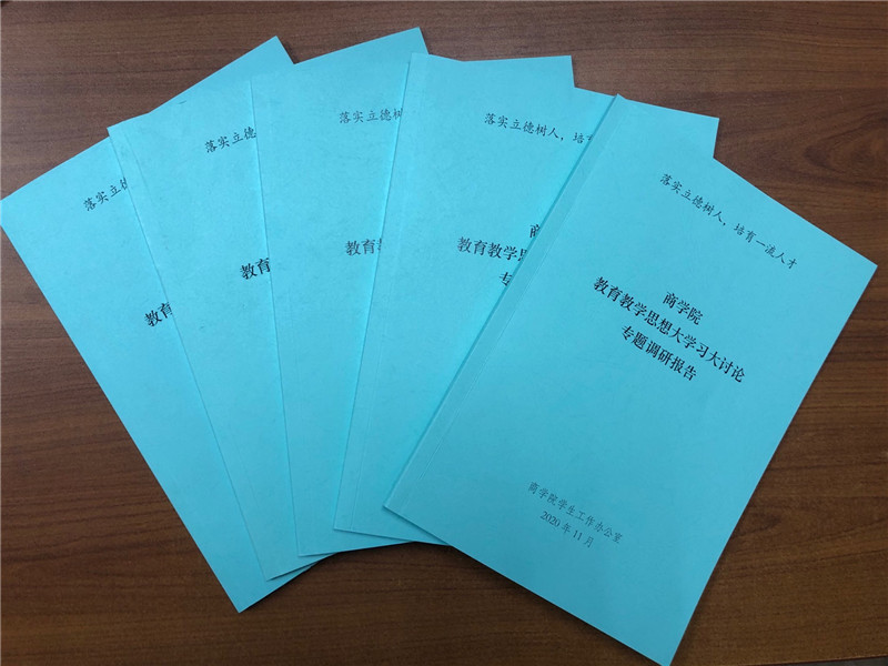 欧美无码 学生工作办公室于2020年9月初面向全院本科生、研究生及学生组织系统干部开展了教育教学思想大学习大讨论专题调研活动,采取问卷调研方式进行,根据各年级、各类型学生及团学干部的特点,共设计9类问卷,调研对象覆盖了欧美无码 所有专业和班级,从未来规划、就业意向、思想动态、学风建设、学校制度等方面开展,其中本科生参与调研率为99.79%,研究生参与调研率66.58%,团学干部参与调研率100%。根据问卷调研情况,欧美无码 学生工作办公室针对发现的问题进行了系统分析,总结撰写了1个总报告、9个专题调研报告,并针对2020届毕业生升学情况撰写了分析报告,共11个报告、约3.3万余字,集结成册。