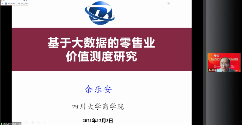 首都经济贸易大学工商管理学院院长、中国ESG研究院执行院长、中国消费大数据研究院院长柳学信主持,东北财经大学副校长、国务院学位委员会工商管理学科评议组成员汪旭晖教授和四川大学特聘教授、国家杰出青年科学基金获得者余乐安教授作主题报告。汪旭晖就“数字零售高质量发展:科学内涵与实现路径”进行了讨论,从数字零售的角度,解读了数字经济和工业经济的不同之处,提出未来发展中数字化转型所面临的挑战。余乐安以“基于大数据的零售业价值测度研究”为题,基于对中石油的案例分析深入地介绍了商品价值测度、消费者价值分类和测度等内容。