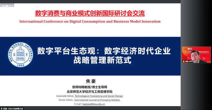 、服务业发展与数字化研究院、消费大数据研究中心共同承办,《管理评论》编辑部、清华经管学院中国工商管理案例中心、《创新科技》编辑部共同协办,国家自然科学基金重大项目“数字经济中数据要素有效使用与消费者保护”支持的“数字消费和商业模式创新”国际研讨会顺利召开。本次会议采用线上方式举行,共计8000余人参会。