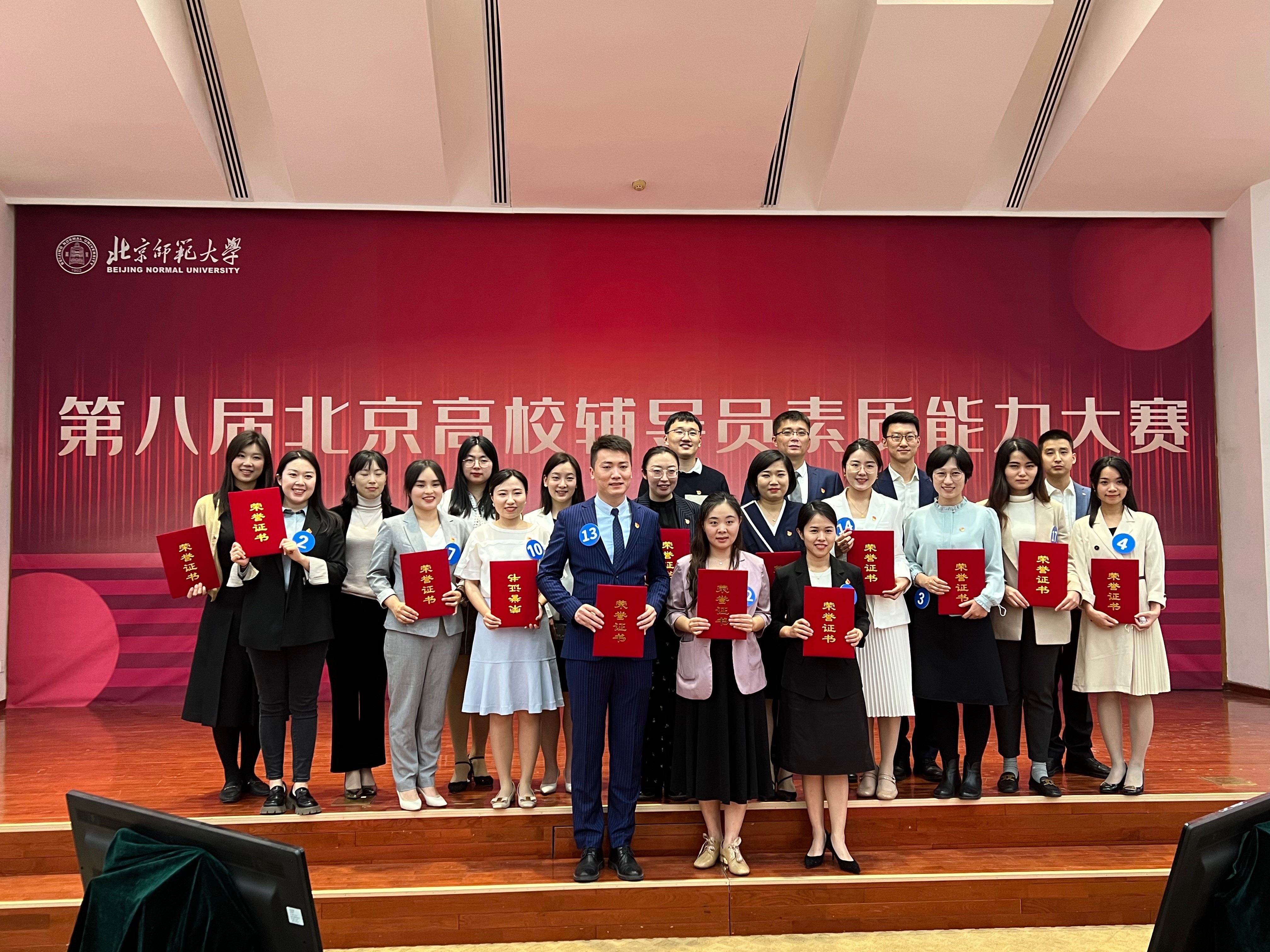4月28日至29日,第八届北京高校辅导员素质能力大赛在北京师范大学举行。该大赛由中共北京市委教育工作委员会主办,北京高校辅导员培训研修基地(北京师范大学)承办。我校欧美无码 辅导员、团委书记赵杰老师经过基础能力测试、案例研讨、谈心谈话等比赛环节,凭借精彩的表现在本届赛事中荣获三等奖。