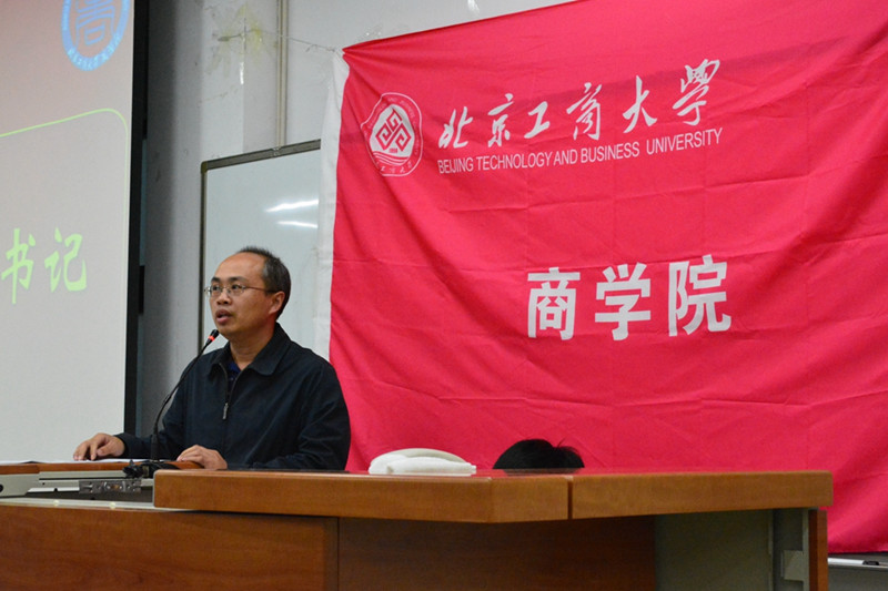 党总支副书记褚才宽代表学院党政领导致辞,他首先对第14届学系的成立再次表示祝贺,同时回顾第13届学系学生干部为学院学生工作的付出以及取得的优异成绩给予高度评价,并对新一届学系全体同学提出了期望。希望新一届学系学生干部们能在各个方面不断提升个人的工作水平,全心全意为同学们服务,打造“学习型,自主型,高效型”的学系管理系统。