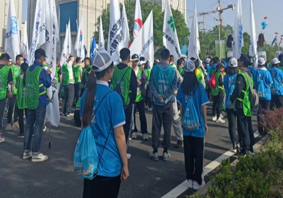 5月7日清晨5点半,40名志愿者整装待发,并于7点20分在长沟长走大会现场集结完毕。他们身着统一的蓝色服装,佩戴北工商的身份徽章,站在指定位置负责第四大美方阵集结,引导与本方阵颜色对应的长走人员进入方阵,劝阻非本方阵的人进入,并告知他们应去方阵位置,为有需要的人指引洗手间、医疗点等位置。随着8点半的锣声响起,长走大会正式开始,志愿者们随队伍一起前进,他们负责控制好行进速度,保障长走的有序进行。志愿者们以微笑面对每一位长走人员,展现了良好的精神面貌。行进至5号点后,志愿者列队道路两侧,为来往长走人员鼓掌加油,现场热烈的气氛让整个活动达到高潮。志愿者们奉行“奉献、友爱、互助、进步”的志愿服务精神,以热情周到的服务、认真负责的态度和饱满的精神状态,为本届长走大会的圆满举行提供了有益助力,用志愿服务擦亮了商院青年名片,展现了商院青年的靓丽风采。