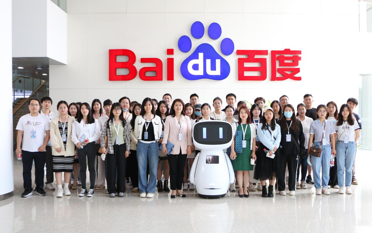 初入百度大厦,师生们便被前厅醒目的LOGO墙和可爱的智能机器人小度吸引,大家纷纷合影留念。