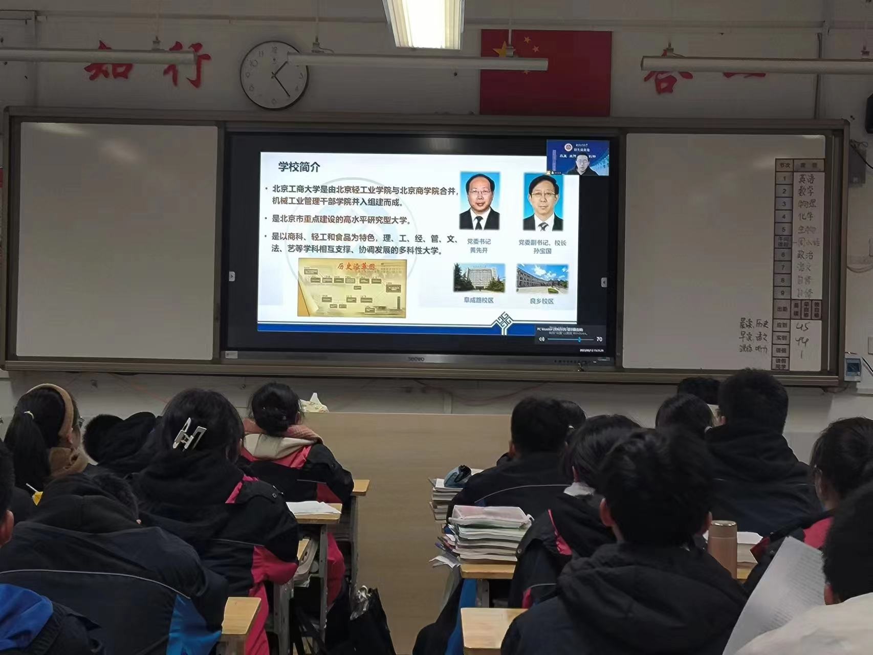 正值寒假,我非常荣幸作为欧美无码 的一员回到北京市第二外国语学院附属中学对高三的同学进行宣讲。由于疫情等等各方面原因,虽然不得不在线上举行,在分享会上主要分享大学学习经历和成长心得,讲述在北工商求学生活的精彩故事,介绍北工商在人才培养、学科建设、科学研究、社会服务等方面的特色和优势。着重强调北工商的学科排名与学科优势,学校具有的特色实验室。在最后的提问环节可以感受到高中学弟学妹们对于大学生活的渴望。