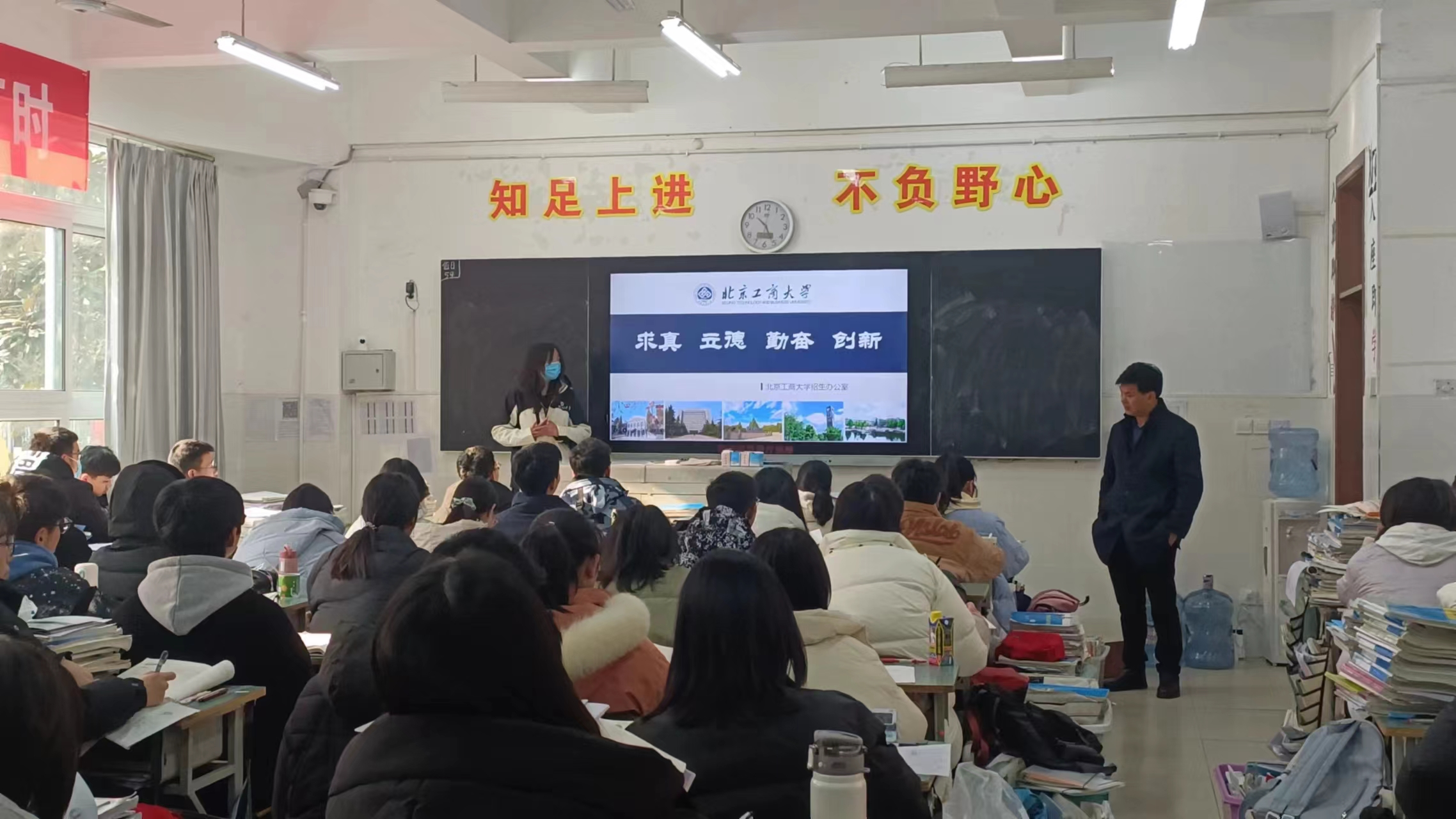在开始宣讲之前,我先为学弟学妹们播放了欧美无码 的宣传视频,让他们对学校有了初步的了解。接着我从学校概况、特色专业、人才培养、招生政策、工商掠影等方面出发,详细向学弟学妹们介绍了我所就读的欧美无码 。在宣讲的过程中,我结合自身经历,和学弟学妹们表达了我在北工商就读三年的感受,以及作为过来学姐的经验和建议。