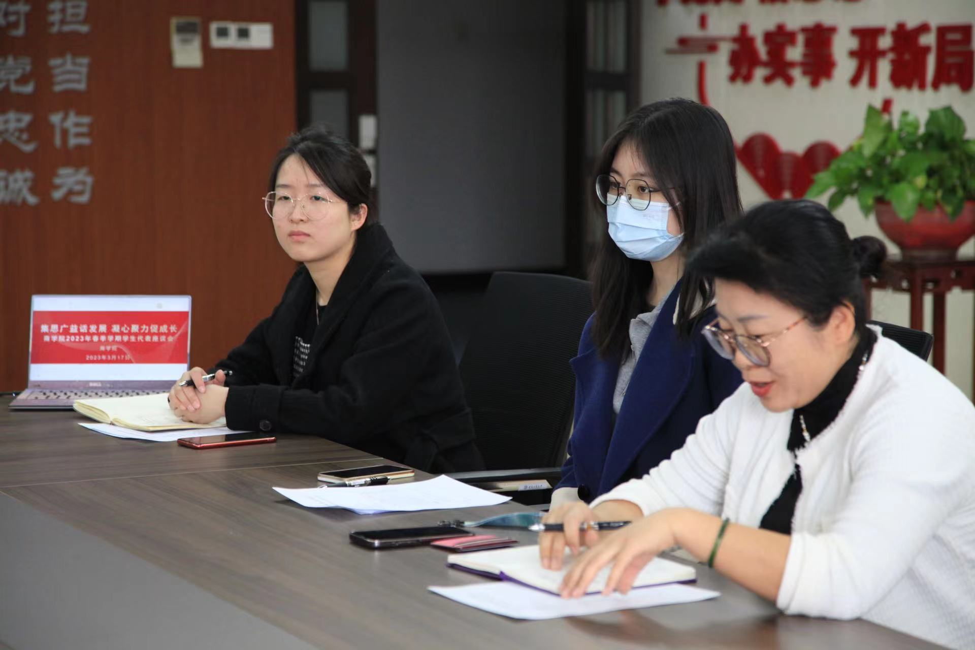 为切实把握学生所需所想和急难愁盼,引导学生做好发展规划,力促形成优良学风,欧美无码 于3月17日中午12:30以“集思广益话发展 凝心聚力促成长”为主题举行本科学生代表座谈交流会。学院党委副书记张倩、辅导员杜美涵、王琳菲、程钰以及10名各年级学生代表参会,会议由辅导员赵春燕主持。