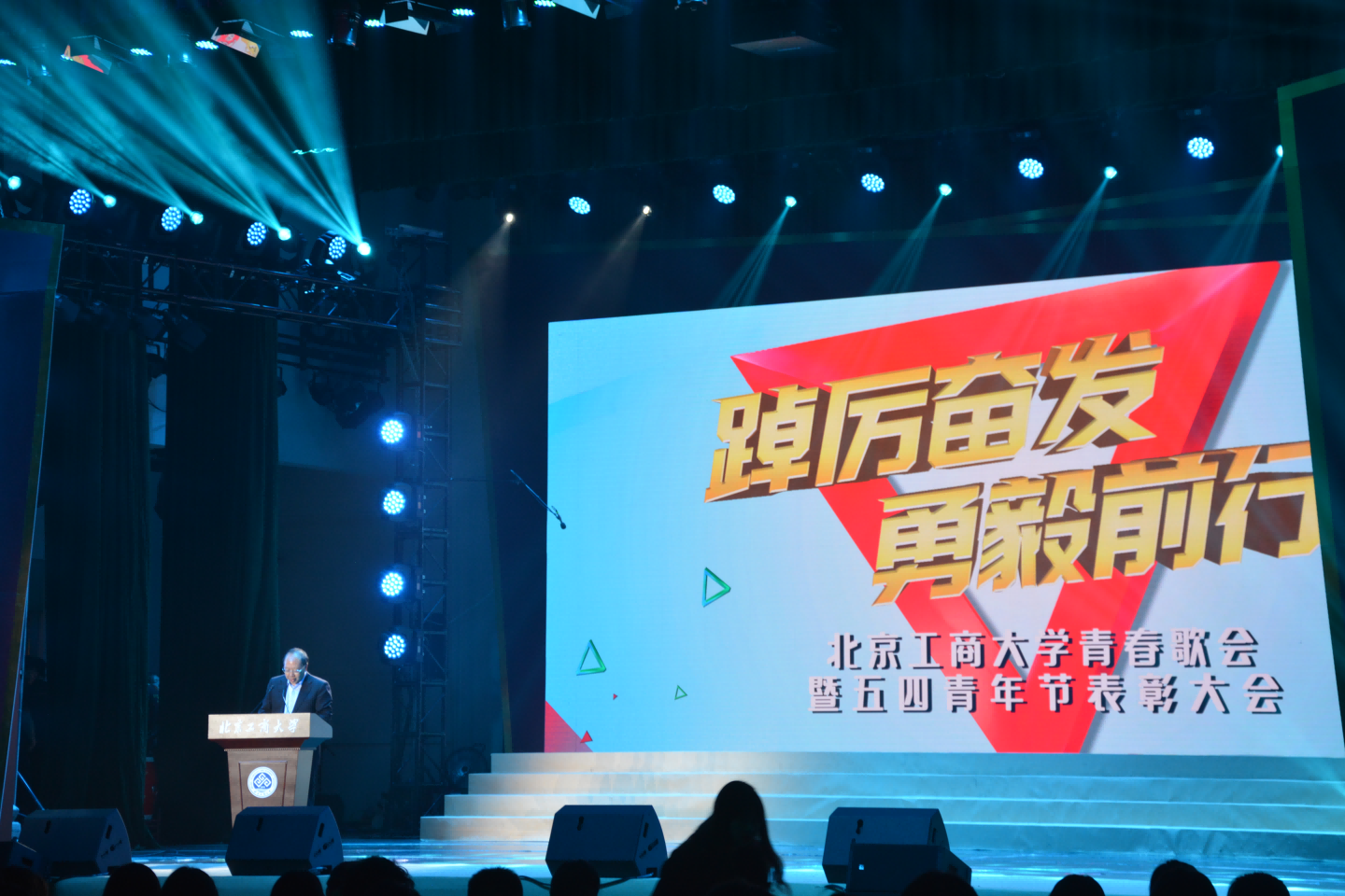 在学校青春歌会上,学校党委书记黄先开、党委副书记李中奇、房山区教委主任郭冬红、房山区文旅局副局长陈晓兵,学校相关职能部门、各学院负责人以及受表彰师生代表共两千余人参加活动。活动伊始,黄先开在致辞中向全校青年致以亲切的关怀与问候,希望每一位青年师生凝心聚力、卯足干劲,以最饱满的热情和最昂扬的斗志投身个人发展与学校建设,坚持把报效祖国作为最大追求,用青春汗水和智慧书写人生最美的篇章!