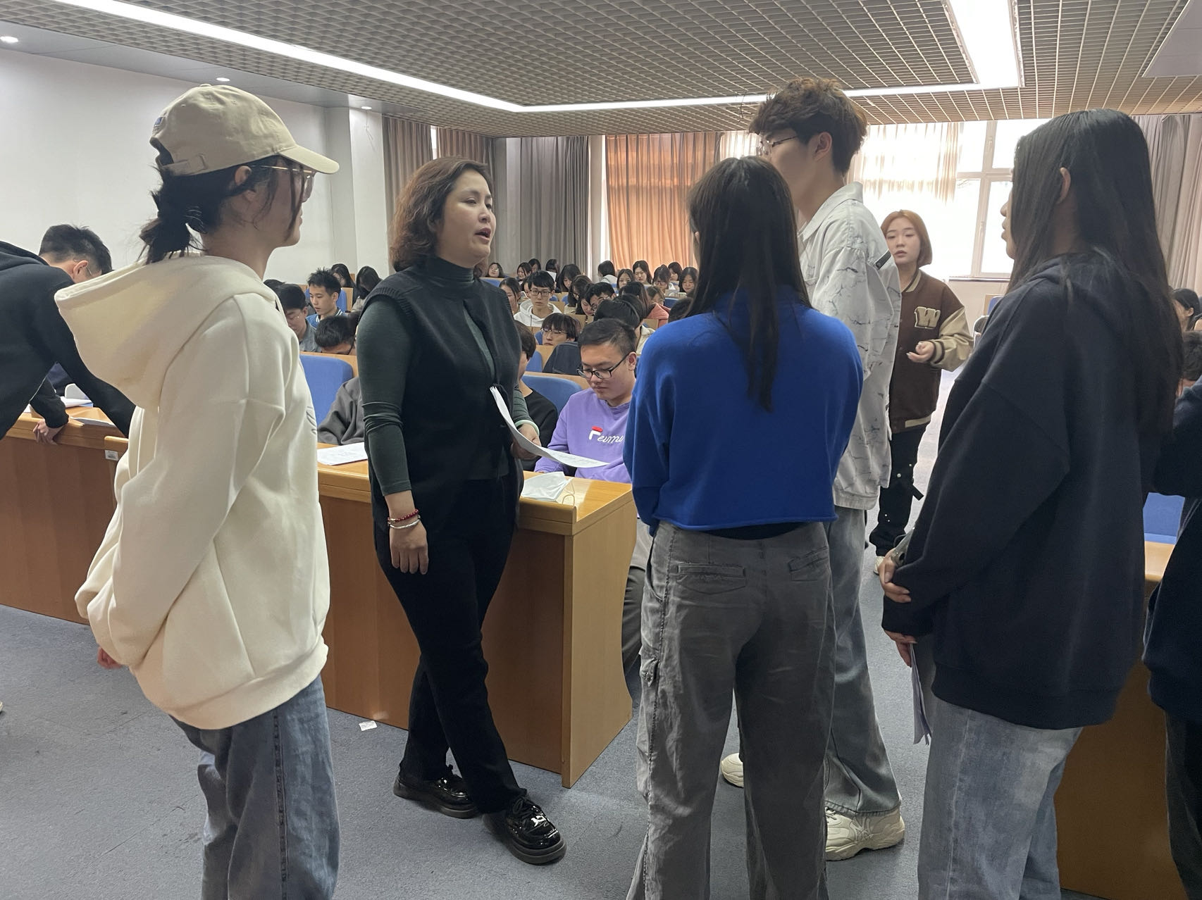 4月24日晚,学院党委副书记张倩为合唱团成员召开专门动员会,鼓励合唱团成员要珍惜专业声乐学习的机会,要沉浸其中、用心体会、知行合一感受音乐带来的思想和力量,要从音乐中感悟内心充盈的幸福从而锻炼出能够创造幸福的能力,要通过合唱切实意识到组织的力量、集体的荣誉。学院团委书记赵杰多次在排练现场为合唱团成员提供指导、加油打气,师生共同努力,只为最终舞台效果的完美呈现。