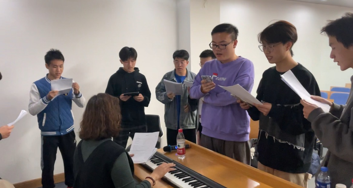 在合唱团的训练排演阶段,学院团委广泛动员、认真组织,动员本科生积极参与,充分利用课余时间集中进行专业训练。从歌谱准备、学唱训练到分声部排练,一次次磨合音调、队形进行彩排,合唱团成员克服了重重困难,始终在追求卓越。此外,学院特邀专业声乐老师为同学们提供专业的指导意见,精益求精。