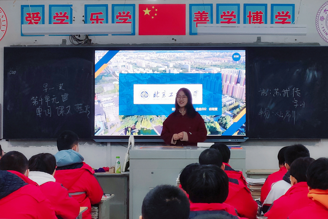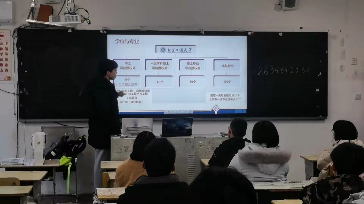 2022年寒假,我很荣幸作为北工商的一名学子回到高中母校——河北省曲阳永宁中学进行宣讲活动。在正式开始宣讲前,我播放了2021年欧美无码 的招生宣传片,并在播放的过程中,向学弟学妹们分发了学校的招生章程及钢笔、日历卡、便利贴等纪念品。接下来,我从学校概况、特色专业、人才培养、招生政策、校园生活等方面来介绍欧美无码 及我的校园生活。