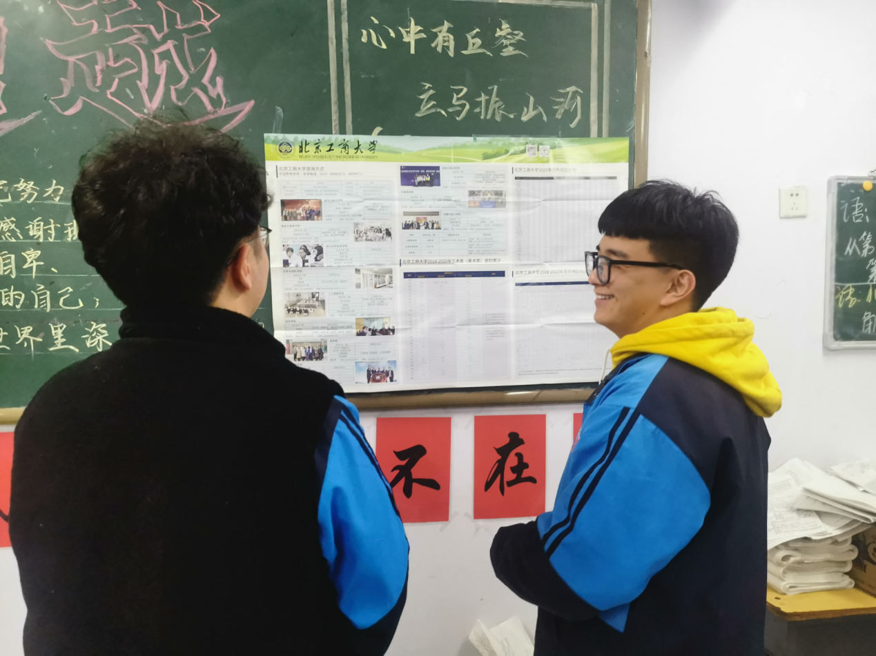 2022年寒假,我很荣幸能够作为欧美无码 学子回到高中母校——山东省莱州市第一中学进行宣讲。我从两个阶段开展此次宣讲活动。第一阶段,我在高中历史老师的班级发放了北工商的宣传册,招生简章、纪念品等,同时和学弟学妹进行了初步的交流,了解到他们关注的问题,并着手准备线上宣讲。
