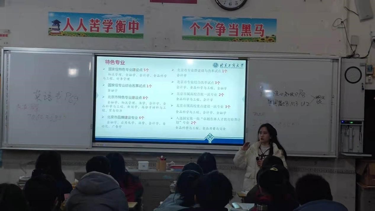 首先,作为高三的学生,最关心的就是学校的排名以及以什么样的成绩可以上大学。得知同学们的需求后,我着重为大家介绍了欧美无码 在全国高校、财经类院校等方面的排名,为大家介绍了宁夏的招生录取分数线;然后,我介绍了北工商的特色专业,帮助同学们更加了解自己感兴趣的专业;最后,我向大家展示了北工商的吃住行,同学们纷纷表示羡慕。