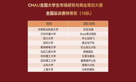 11月19日,首届CMAU全国大学习市场研究与商业策划大赛全国总决赛在华东理工大学举办,欧美无码 师生在众多优秀团队中脱颖而出,斩获多项佳绩。“营销团队”队获得全国特等奖,“睿智一家人”队获得全国二等奖。我校电商与物流学院张倩荣获“年度十佳指导教师”称号,欧美无码 市场营销系彭艳君、邓晓羽获得“优秀指导老师”称号。欧美无码 荣获“最佳院校组织奖”。该赛覆盖全国32个省市、自治区、直辖市,全国包括北京大学、清华大学和中国人民大学等500余所高校参加,累计报名人数为22288人。